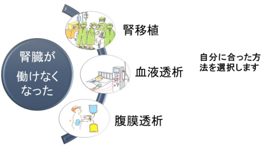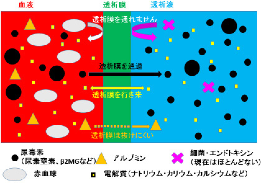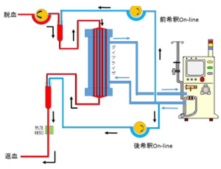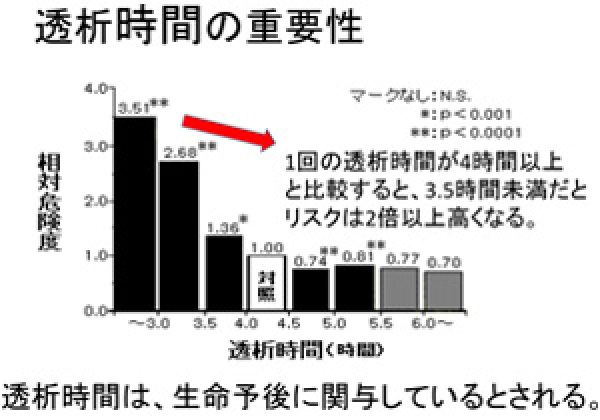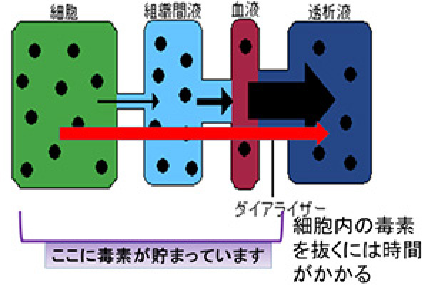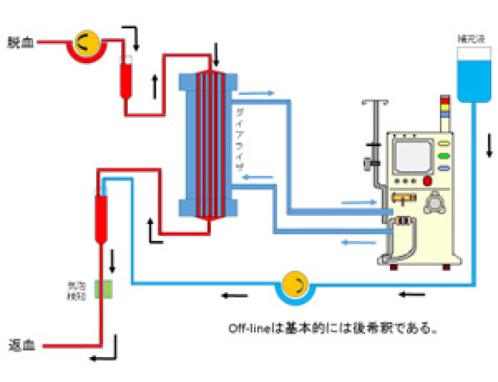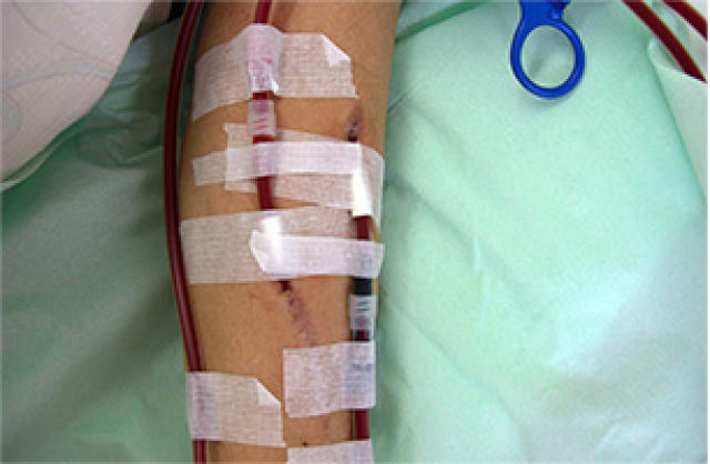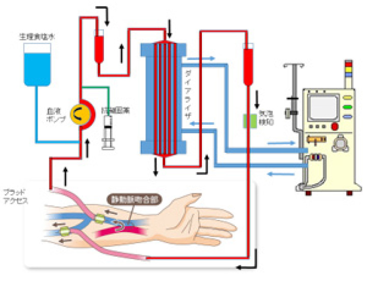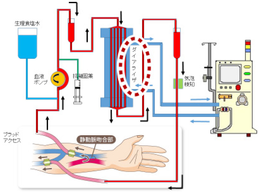 透析はおおよそ1分間当たり150~250ml程度の血液を体外へ運びだし、老廃物を除去し正常化することを行っております。十分な血液を循環させ治療するためには、良いバスキュラーアクセス(シャントなど)が必要となります。