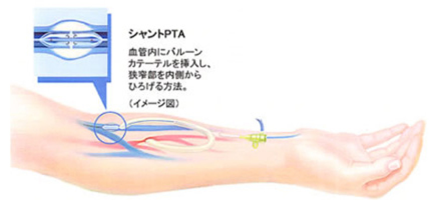 その場合は心臓への負担を軽減するために、PTAではなく手術(シャント再建=作り直す)をお勧めすることもあります。